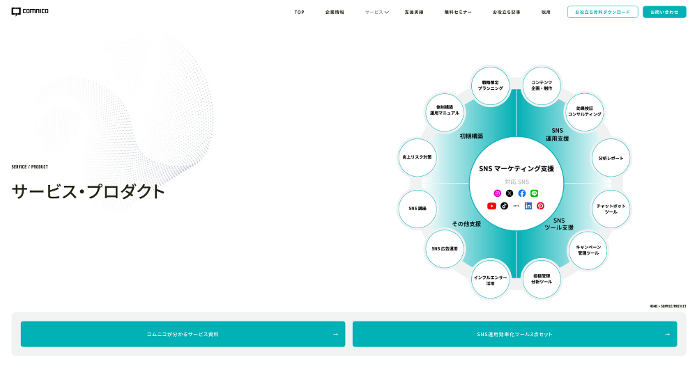 コムニコは、豊富な実績と手厚い支援を行うSNSマーケティングのプロフェッショナルです。SNSの運用支援や運用効率化ツール、SNS無料セミナーなどを提供しています。大手企業を中心に業界業種問わず幅広い支援実績があり、初期構築からお任せできます。